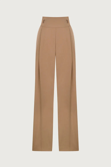 Wide-leg trousers with a structured high waist and corset-inspired waistband. Designed with a sleek silhouette and long, flowing legs.