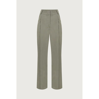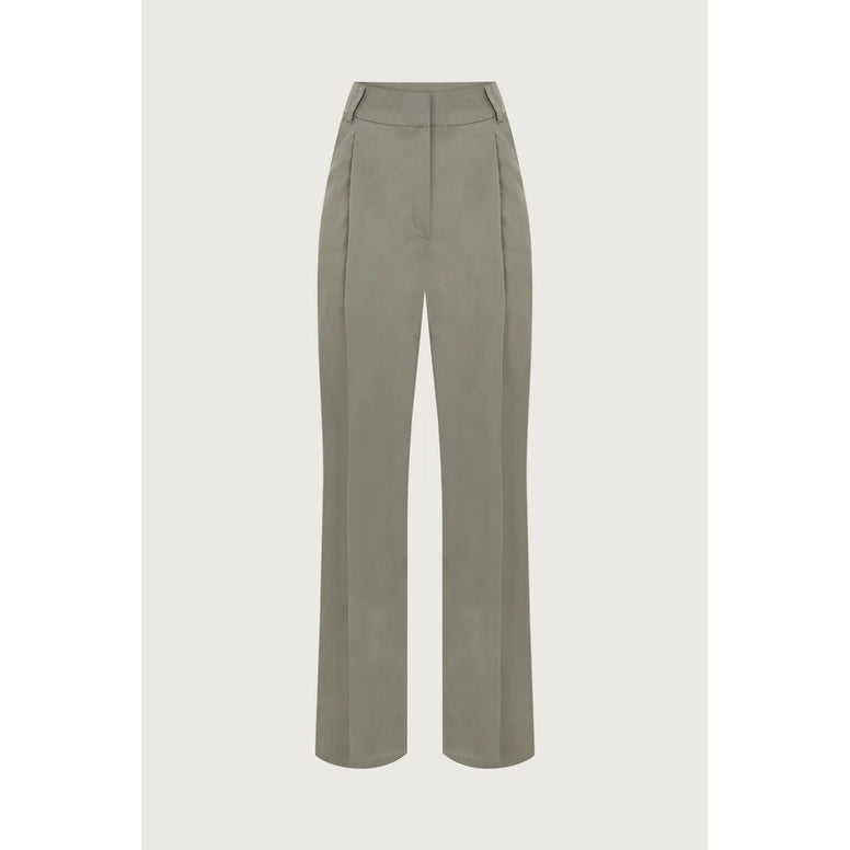 Mid-rise wide-leg trousers crafted from a soft yet structured blend. Designed with four pleats at the waist, side pockets and back welt pocket detailing. Secured with a hook-and-bar fastening and button closure.